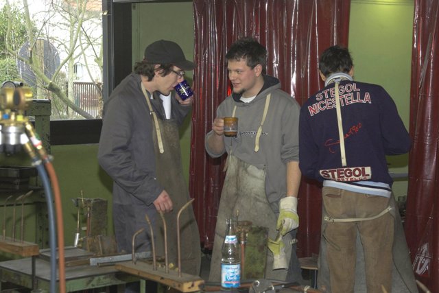 Auf der diesjährigen Pfadfinder-Stufenkonferenz wurde über die neue Stufenleitung beraten. Christian Becker und Christiane Schmitt stellten sich zur Wahl und wurden von der Stufenkonferenz auch vorgeschlagen. Sie werden demnächst vom Diözesanvorstand berufen. Steffi Ackermann wurde aus dem Pfadfinder-Arbeitskeis verabschiedet. Sie beendet Ihr Arbeit nach vielen Jahren aus beruflichen Gründen und wurde zum Dank vom AK mit „Gold“ aufgewogen. Der Samstag sollte dann nicht mehr mit Theorie verbracht werden. Früh machten sich die Teilnehmer der Pfadfinderstufe auf den Weg in die Schweisser-Werkstatt der IHK in Worm und lernten unter fachlicher Anleitung Schweissen. Ziel war es, aus Metallresten ein Kunstwerk mit Bezug zum Pfadfindertum zu schaffen.Am Samstag wurde außerdem der Grundstein für „Satt Grün 2008“, dem Geländespiel für Pfadfindergruppen aus der ganzen Diözese gelegt.