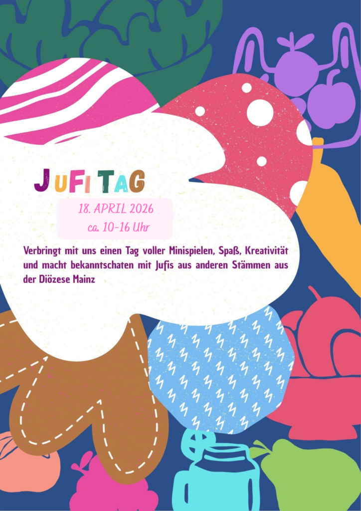 Achtung Jufis: Bereitet euch auf einen Tag voller Minispielen, Spaß, Kreativität, und Bekanntschaften mit anderen Jufis vor. Packt eure Leiter*innen ein und kommt nach Mainz zu unserem Diözesan-Jufi-Tag 2026. Wir wollen mit euch verschiedene Spiele spielen, unseren neuen MAinz-Kobold bauen und natürlich viel Spaß haben. Für ein unfassbar leckeres und kIndergerechtes Mittagessen ist gesorgt.
